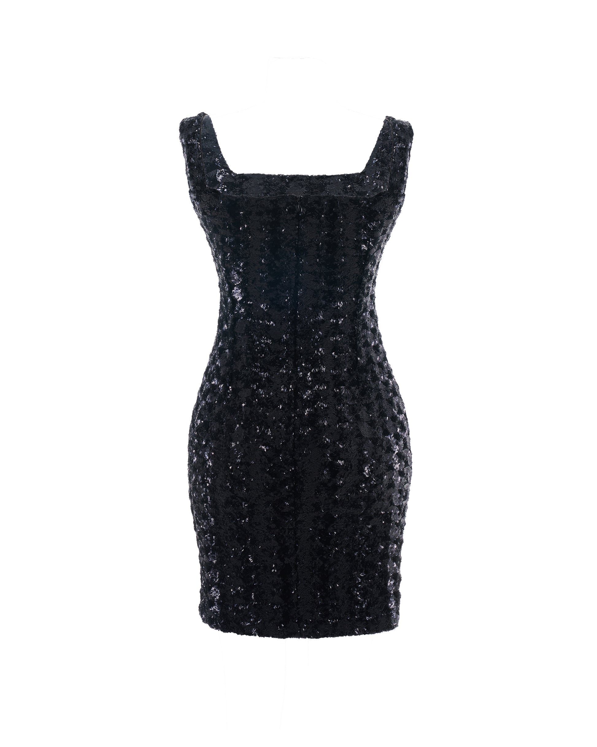 ÜRÜN ÖZELLİKLERİ: Askılı, Kare Yaka, Gizli Fermuarlı, Astarlı, Mini Boy Siyah Payet Party Elbisesi.