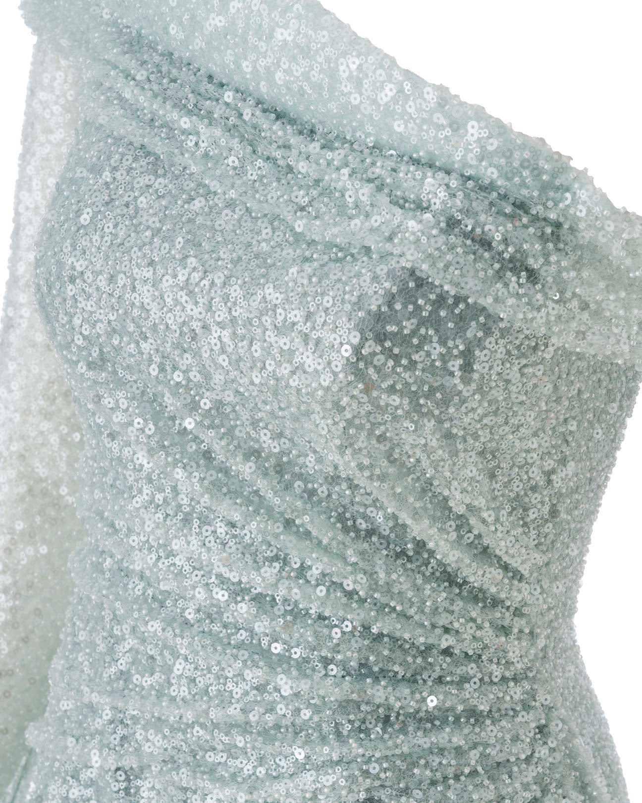 ÜRÜN ÖZELLİKLERİ: Asimetrik Yaka, Gizli Fermuarlı, Tamamı Astarlı, Nil Yeşili Gece Elbisesi.