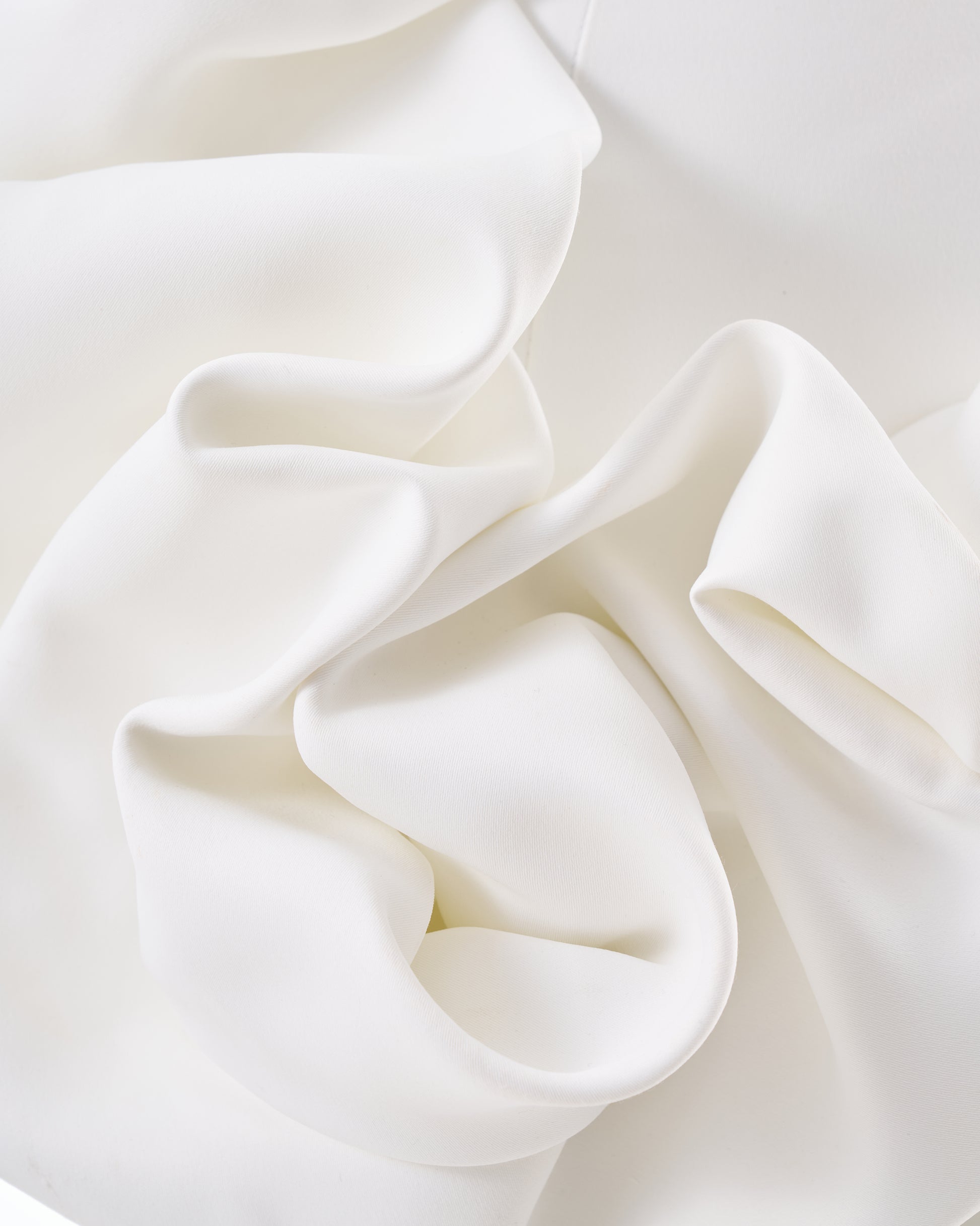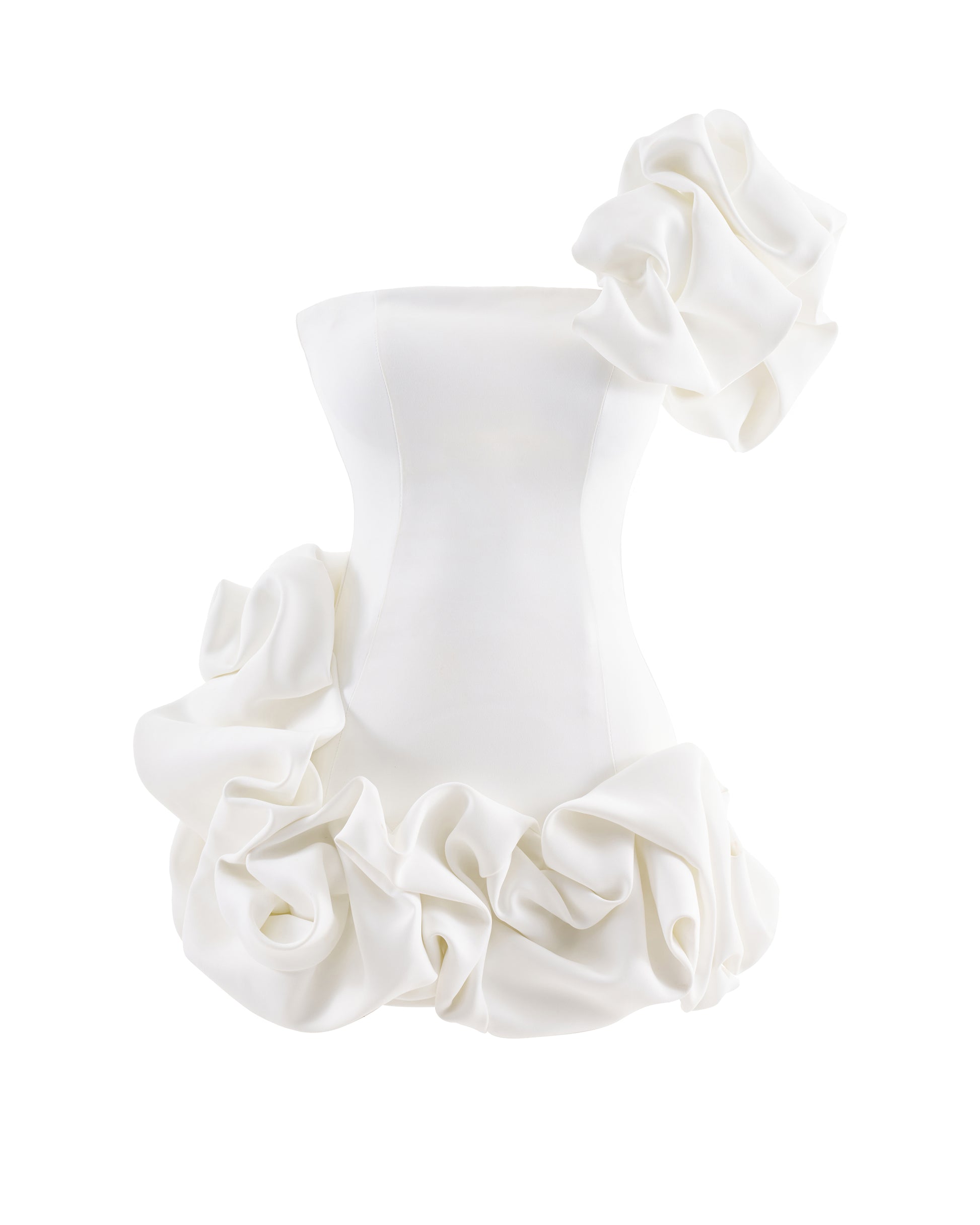 ÜRÜN ÖZELLİKLERİ: Straplez, Mat Saten, Balenli, El Yapımı Drape Ve Büzgü Detaylı, Arkası İpli, Ekru Mini Elbise